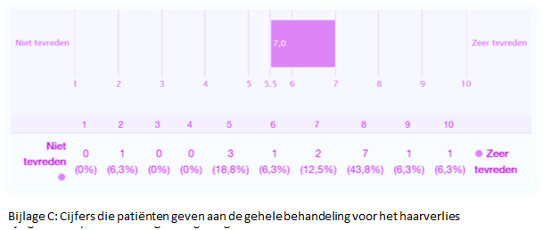 Uit de enquête is gebleken dat patiënten over het algemeen tevreden zijn over hoe zij zijn behandeld. Ze geven een gemiddelde van een 7 (zie Bijlage C).